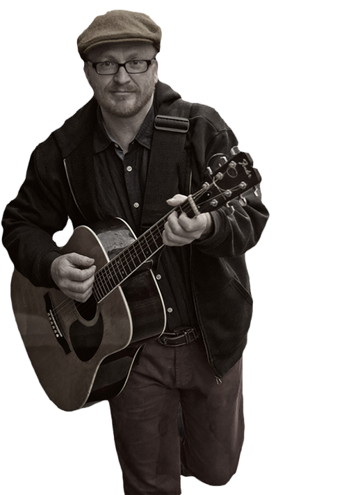 Phil plays acoustic guitar, blues-harp and bodhran,